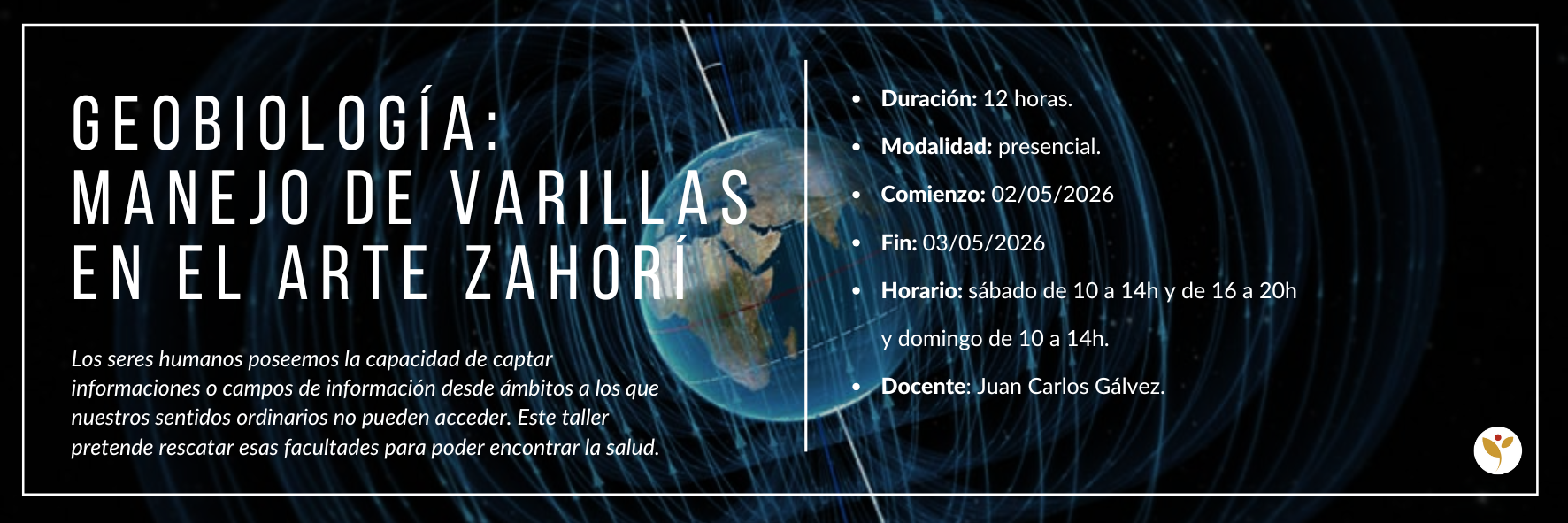Durante el curso se facilitará el material de apuntes y de práctica para el buen funcionamiento de las clases. En el bloque teórico adquirirás los conocimientos necesarios para poder evaluar y localizar las alteraciones terrestres y para trabajar en el desarrollo de la percepción y la intuición fuera del alcance de los sentidos.