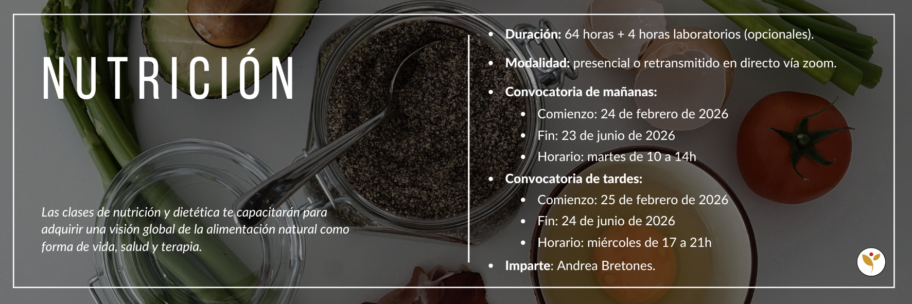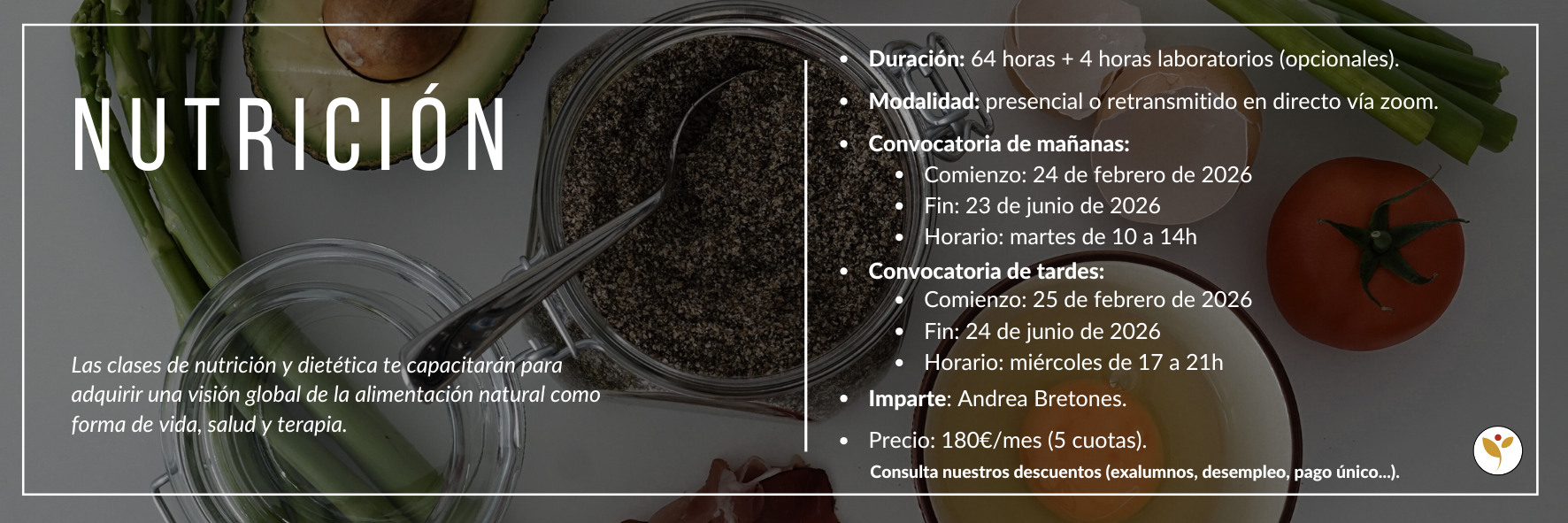 Las clases de nutrición y dietética te capacitarán para adquirir una visión global de la alimentación natural como forma de vida, salud y terapia.