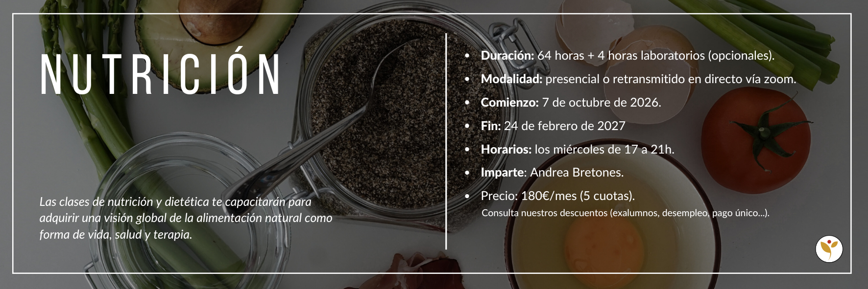 Las clases de nutrición y dietética te capacitarán para adquirir una visión global de la alimentación natural como forma de vida, salud y terapia.