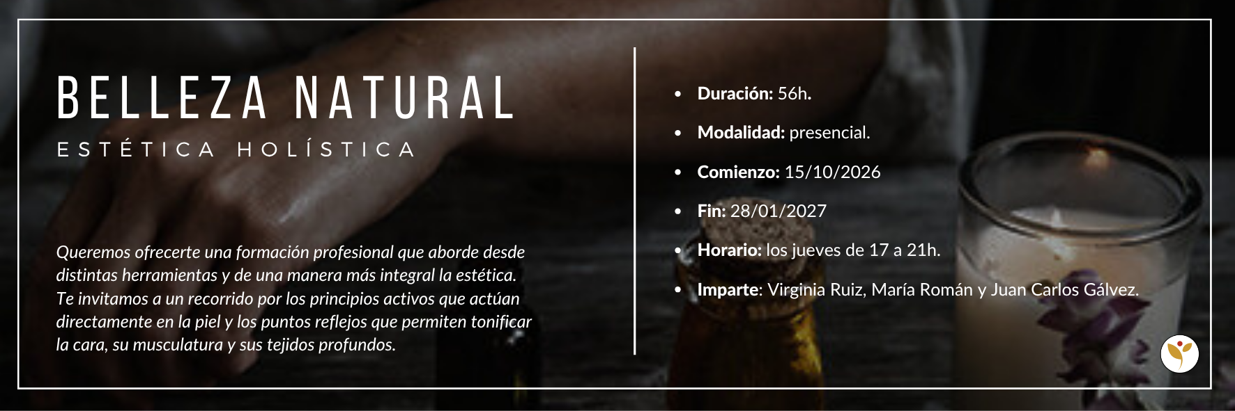 - Adquirirás habilidades prácticas para la aplicación de técnicas naturales.