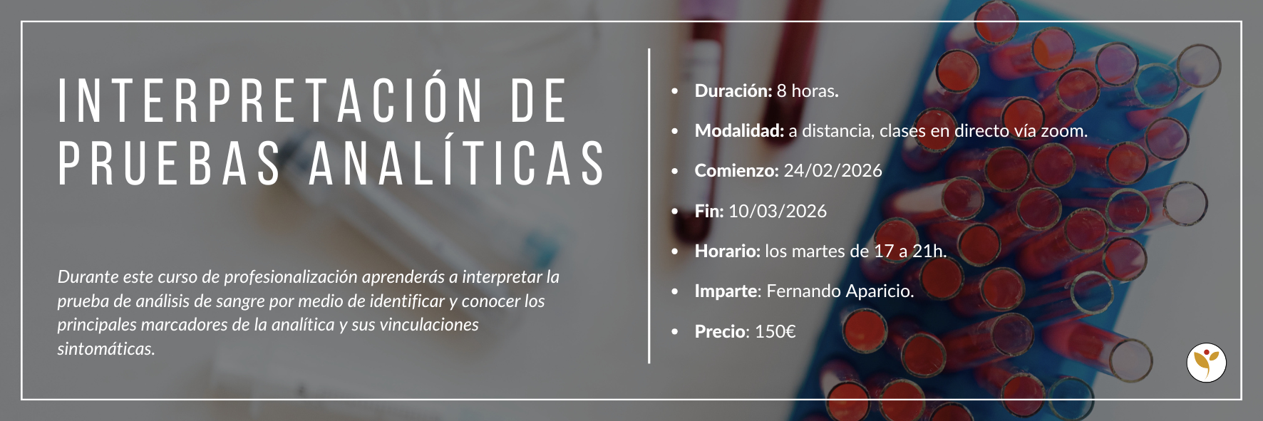 - - Buscas aprender a identificar y conocer los principales marcadores de la analítica de sangre.