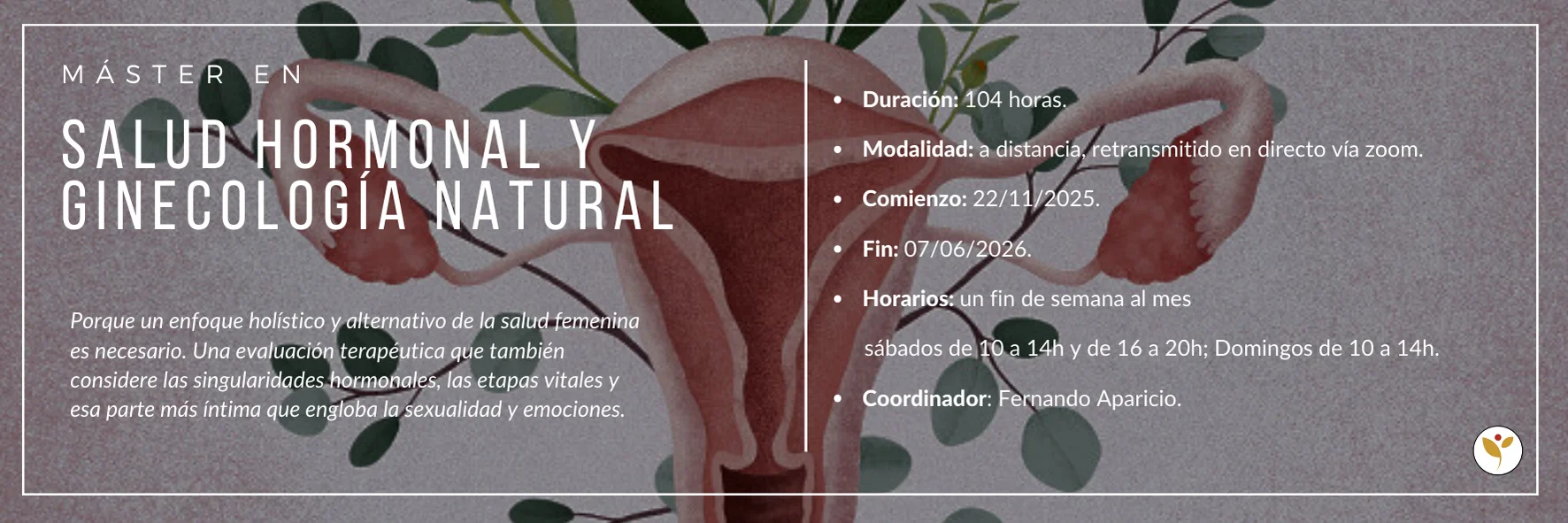 Esta formación nace de la necesidad de especialización en el abordaje de disfunciones y patologías propias de la mujer desde las terapias naturales. Es el resultado de más de 10 años de estudio y formación y estamos orgullosos de poder llevarla a la práctica clínica.